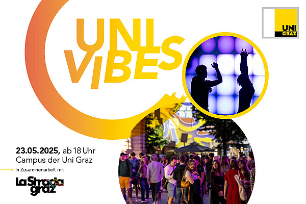 Einmal im Jahr verwandelt sich die Universität Graz in eine bunte Party-Location: Mit DJs, akrobatischen Tanz-Einlagen, einem Live-Konzert und vielem mehr feiert die Uni Vielfalt und das Miteinander. “Uni Vibes – das Fest, das Grenzen überwindet” findet am 23. Mai 2025 ab 18 Uhr bei freiem Eintritt am Campus statt. >> Save the Date (Video-Teaser)