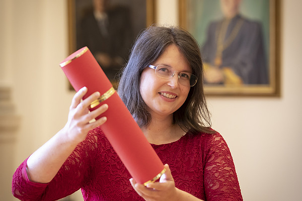 Petra Hödl can boast the best grades from the fifth grade to her dissertation. That is why the linguist received her doctorate on 20 September 2021 at the University of Graz sub auspiciis praesidentis, i.e. "under the eyes of the president". Alexander Van der Bellen was represented by the Styrian Governor Hermann Schützenhöfer at the ceremonial conferral of the doctorate in the auditorium of the University of Graz. >> learn more (German only)