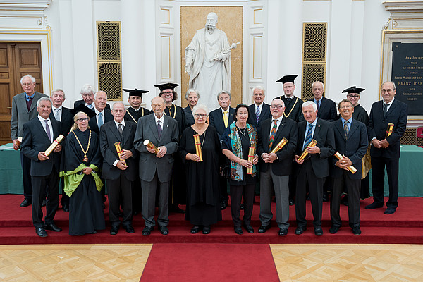 Sie sind anerkannte Persönlichkeiten, blicken auf eine glänzende Karriere zurück. Den Grundstein dafür haben sie vor 50 Jahren mit einem Studienabschluss an der Universität Graz gelegt: Insgesamt 35 AbsolventInnen wurden am 28. September 2021 für ihr hervorragendes berufliches Wirken, besondere wissenschaftliche Verdienste oder die enge Verbundenheit mit der Universität Graz geehrt. Sie bekamen das "Goldene Doktordiplom" überreicht. >> mehr erfahren