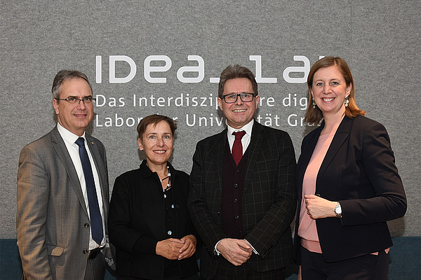 Die Uni Graz hat eine neue Denkfabrik: das "IDea_Lab" in der Leechgasse 34. Das Lab fungiert als Schnittstelle von avancierter Digitalisierungsforschung und digitaler Transformation an der Universität. Zur offiziellen Eröffnung durften Rektor Peter Riedler und Leiterin Petra Schaper Rinkel den Bildungsminister Martin Polaschek und Wissenschaftslandesrätin Barbara Eibinger-Miedl begrüßen. >> mehr erfahren The University of Graz has a new think tank: the "IDea_Lab". The new lab functions as an interface of advanced digitisation research and digital transformation at the university. Rector Peter Riedler and Director Petra Schaper Rinkel welcomed Minister of Education, Science and Research, Martin Polaschek, and Provincial Councillor for Science, Barbara Eibinger-Miedl, to the official opening.