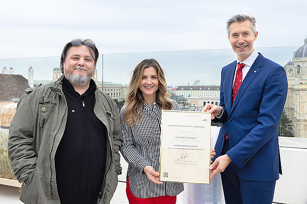 Bee research at the University of Graz is regularly a cause for international excitement. This is demonstrated by the latest achievement of Thomas Schmickl's team, which has developed a smart honeycomb as winter protection for the insects. The biologists have just presented it as part of the BioBienenApfel environmental and social project. Famous ambassadors for the protection of bees include ex-Formula 1 star Sebastian Vettel and skiing legend and singer Lizz Görgl. Markus Fallenböck, Vice Rector of the University of Graz, awarded them an honorary sponsorship for the Bee Research Park of the University of Graz in appreciation of their commitment.