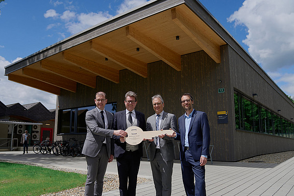 New training and diagnostics centre ceremonially opened at Aigner-Rollett-Allee 13: Hans-Peter Weiss, CEO of BIG, handed over the key of the sustainable building to Rector Peter Riedler – in the presence of Martin Polaschek, Minister of Science. The building will expand the competence in the field of human movement science and sports science research.