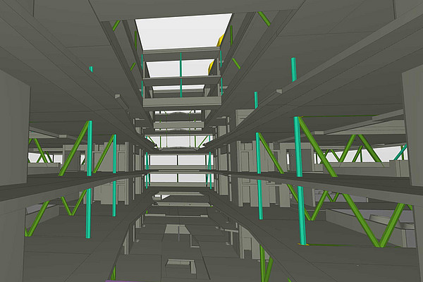 The Graz Centre of Physics is rapidly growing in height. The majority of the shell construction is expected to be completed by the end of 2026. The central "building blocks" for this are a total of 16 steel trusses, which will be delivered and installed in the first half of 2026. By the end of February, the walls on the ground floor and the so-called substructures for the 16 trusses, which extend over two floors, will have been completed.