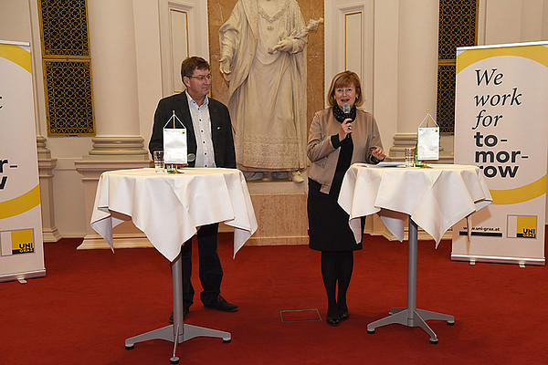 „Ihre Leistungen tragen wesentlich zur Sichtbarkeit der Universität Graz bei“, dankte Rektorin Christa Neuper etwa 180 ForscherInnen, die der Einladung zum mittlerweile fünften Neujahrsempfang in der Aula gefolgt waren. Neuper sowie Forschungs-Vizerektor Peter Scherrer gratulierten WissenschafterInnen, die erfolgreich publiziert, beachtenswerte Preise erhalten oder bedeutende Drittmittelprojekte eingeworben haben. >> Mehr erfahren